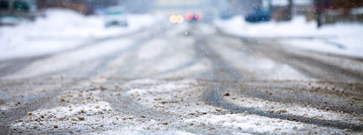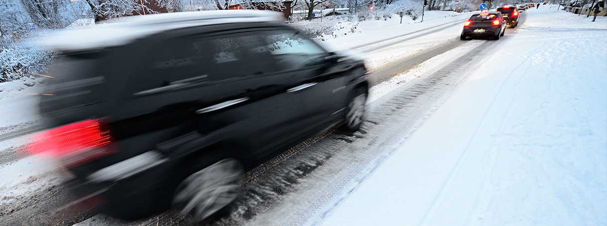 Snö och is försämrar väggreppet och förlänger bromssträckan