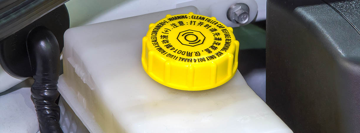 Symbolen i mitten på locket visar att behållaren innehåller bromsvätska