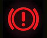 Om bromsvarningslampan tänds så har du antingen glömt parkeringsbromsen åtdragen eller så är bromsvätskenivån för låg, troligtvis på grund av ett läckage. Om bromsvätskenivån för låg så fungerar inte bromsarna som de ska. Om det inte är parkeringsbromsen som är åtdragen så måste du omedelbart stanna och låta bärga bilen. Du får aldrig köra utan fullt fungerade bromsar!