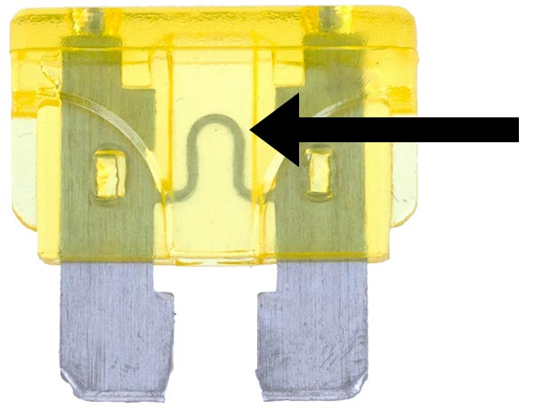 Om metalltråden som pilen pekar på är av så är säkringen trasig