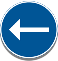 PåbudsmärkenTalar om vad du är skyldig att göra, till exempel att du måste köra i en viss riktning. Påbudsmärken gäller i regel från märket fram till nästa korsning, annars till ett slutmärke eller en tilläggstavla. Nästan alla påbudsmärken är runda med vit kant och vitt motiv mot blå bakgrund. |