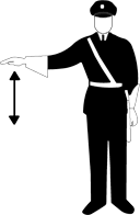 Det vinkande tecknet (som polismannen gör med sin högra arm) anger att trafikanter i den färdriktning som tecknet ges får fortsätta framåt. Det andra tecknet (som polismannen gör med sin vänstra arm) anger stopp för den trafikant som kommer framifrån eller bakifrån.