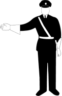 Tecknet används i korsningar och gäller så länge polismannen vänder sig åt samma håll. För trafikanter som kommer från sidan betyder tecknet att vägen är fri och att det är tillåtet att köra.