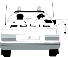 Följ efter och stanna bakom polisfordonet - Tecknet anger att föraren av det fordon som befinner sig bakom polisfordonet ska följa efter det och stanna när polisfordonet stannar. Tecknet kan ges med handens ovansida eller en spade med texten "STOP" och/eller "POLIS".