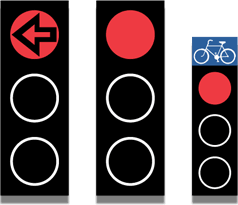 Rött Du måste stanna innan stopplinjen eller, om sådan saknas, trafikljuset. Om signalen visar rött med en svart konturpil gäller endast stopp för den eller de färdriktningar som anges med pilen. |