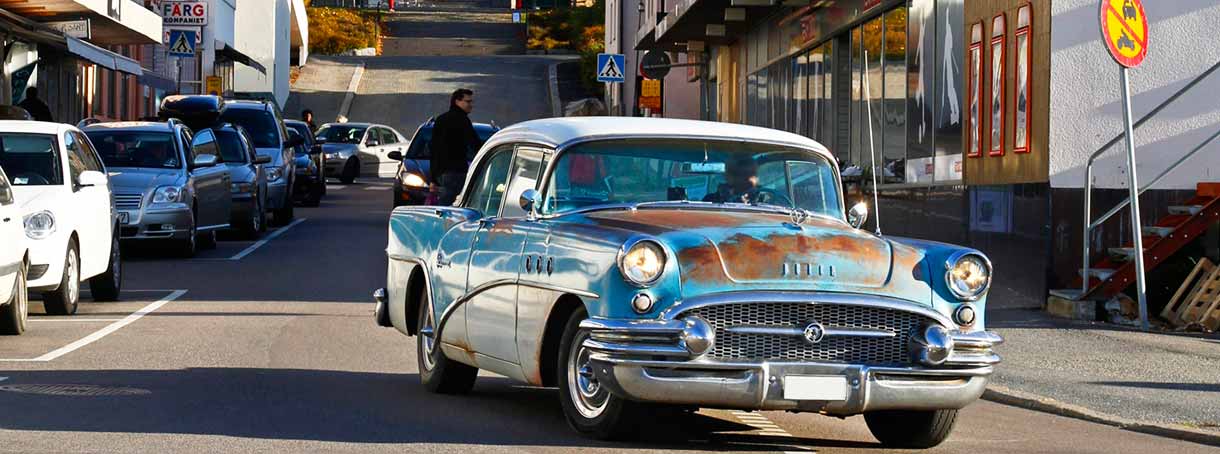 Svängningsregeln gäller även när den mötande trafiken ska svänga höger. Bil B ska svänga vänster i korsningen och måste därför lämna företräde för bil A. |