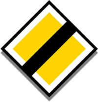 HuvudledUpplyser om att vägen du kör på är en huvudled. Trafik på korsande vägar har alltid väjningsplikt eller stopplikt. |