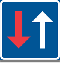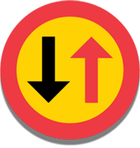 Väjningsplikt mot mötande trafikAnger att du måste lämna företräde vid möte. |