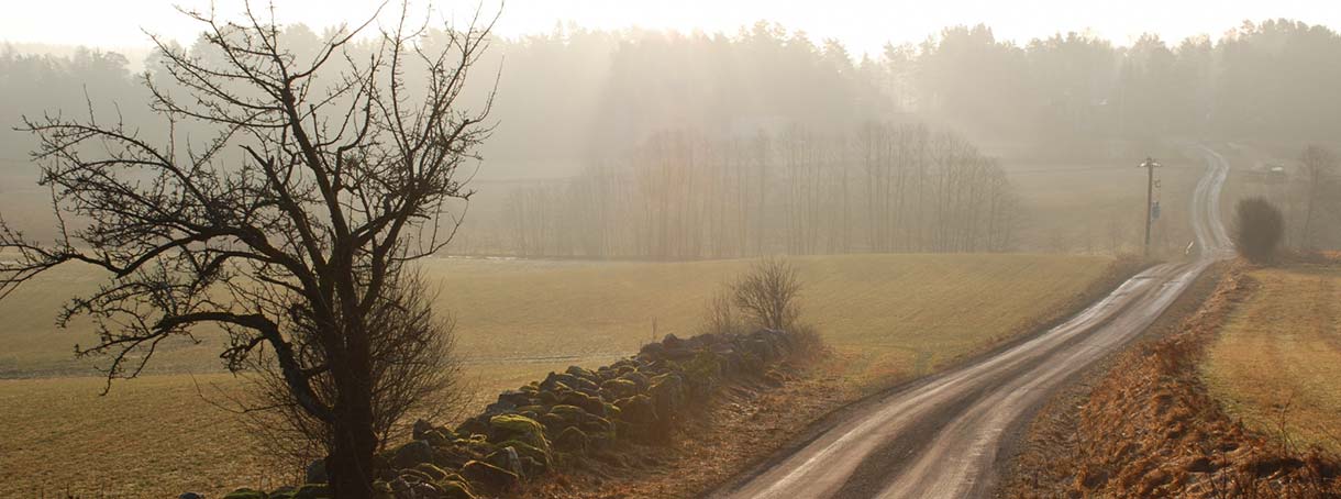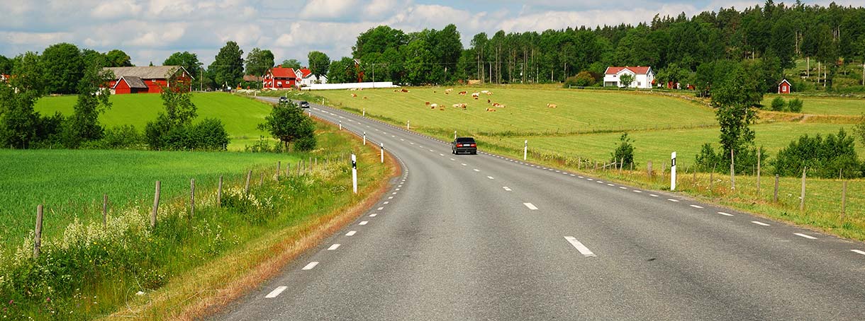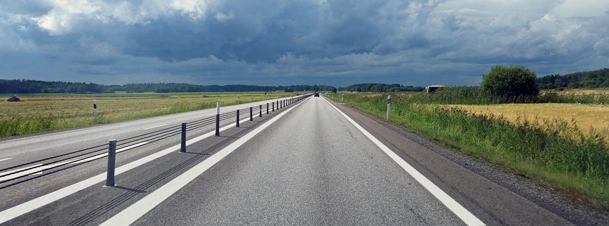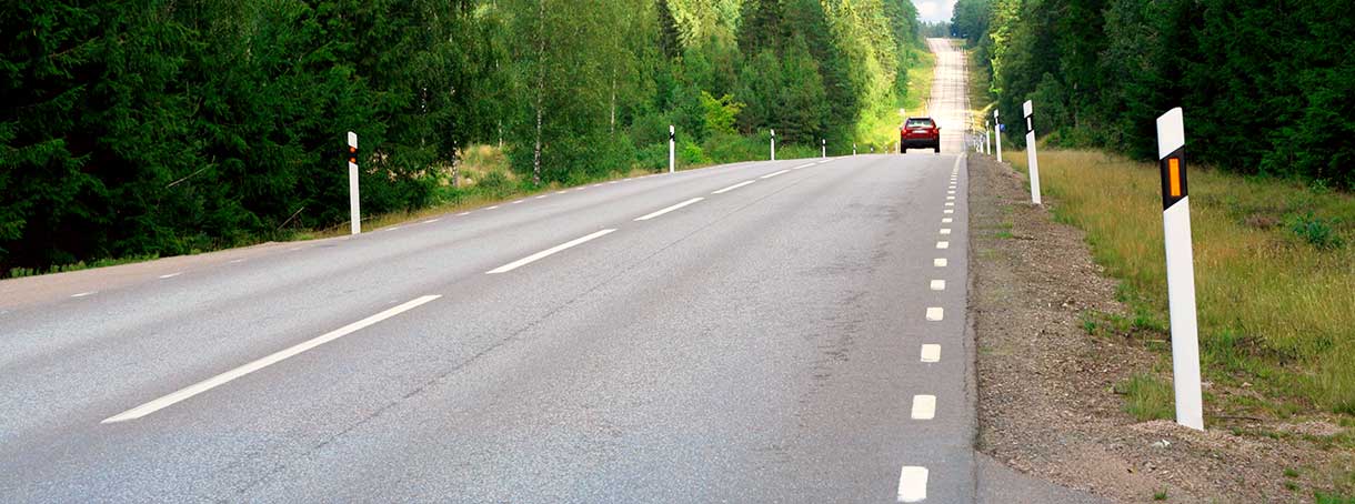 Även om vägen inte upplevs som trafikerad så måste du alltid vara beredd på möte, speciellt där sikten är skymd. Innan kurvor och backkrön är det därför extra viktigt att sänka farten och hålla ut till höger.