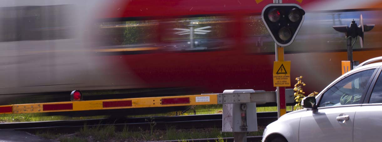 Ett tåg som kommer i full fart har en bromssträcka på 600-1 500 meter vilket innebär att tågföraren inte har någon möjlighet att stanna om ett fordon passerar korsningen vid fel tillfälle. Du bär alltså hela ansvaret för att överfarten sker säkert.