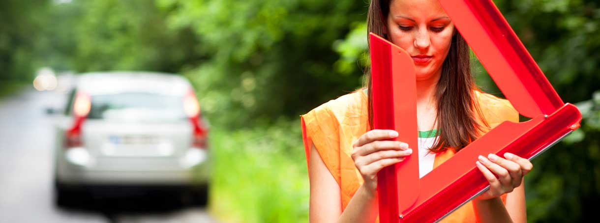 Vid nödstopp varnar du andra trafikanter genom att tända varningsblinkers och placera ut en varningstriangel