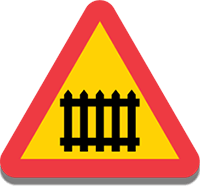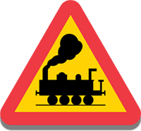 Järnvägskorsning utan bommarDetta vägmärke varnar om att vägen korsar en järnväg utan bommar. |
