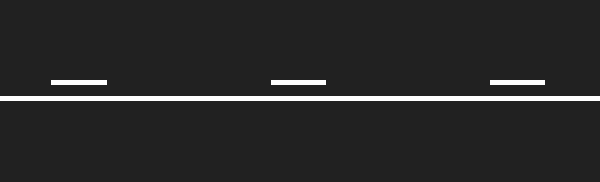 Förhållandet 1:1 mellan dellinje och mellanrum (mellanrummen är lika långa som dellinjerna) indikerar att 50 km/h eller lägre gäller - om inget annat anges.