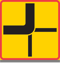 Denna tavla anger att förare på anslutande vägar har väjningsplikt i korsningen