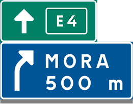 Du svänger alltid av från en motorväg via en avfart. Innan alla avfarter kommer först en eller flera förberedande avfartsvisare, därefter en avfartsvisare där avfarten börjar och slutligen en avfartsskärm där avfarten viker av från vägen.