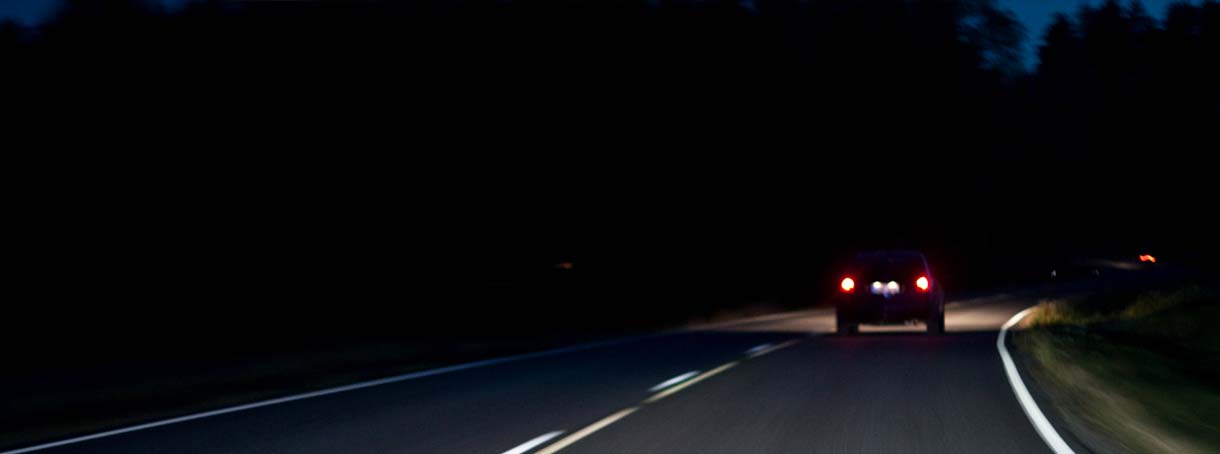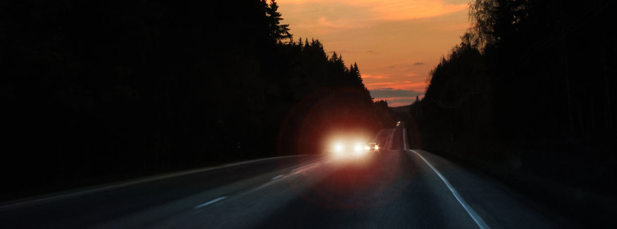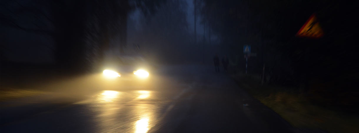 Du löper ungefär 2-3 gånger större risk att råka ut för en olycka vid mörkerkörning än vid körning i dagsljus. Vid mörkerkörning är det svårare att upptäcka fotgängare, cyklister och vilt längs vägarna.