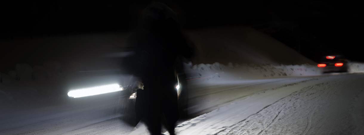 Mörkt klädda fotgängare utan reflex kan vara väldigt svåra att upptäcka vid mörkerkörning