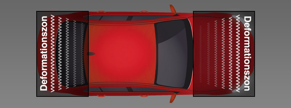 Vid en krock fram- eller bakifrån trycks deformationszonen ihop på ett sätt som absorberar en stor del av energin från kollisionen