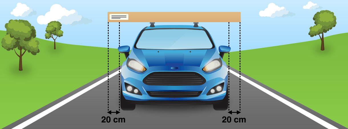 Last får inte sticka ut mer än 20 centimeter i sidled på någon sida